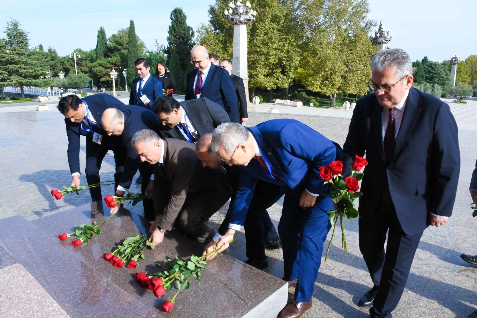Tədbir iştirakçıları əvvəlcə Ulu Öndər Heydər Əliyevin abidəsini ziyarət edərək, abidənin önünə tər gül dəstələri düzüb, xatirəsini dərin ehtiramla yad ediblər.
