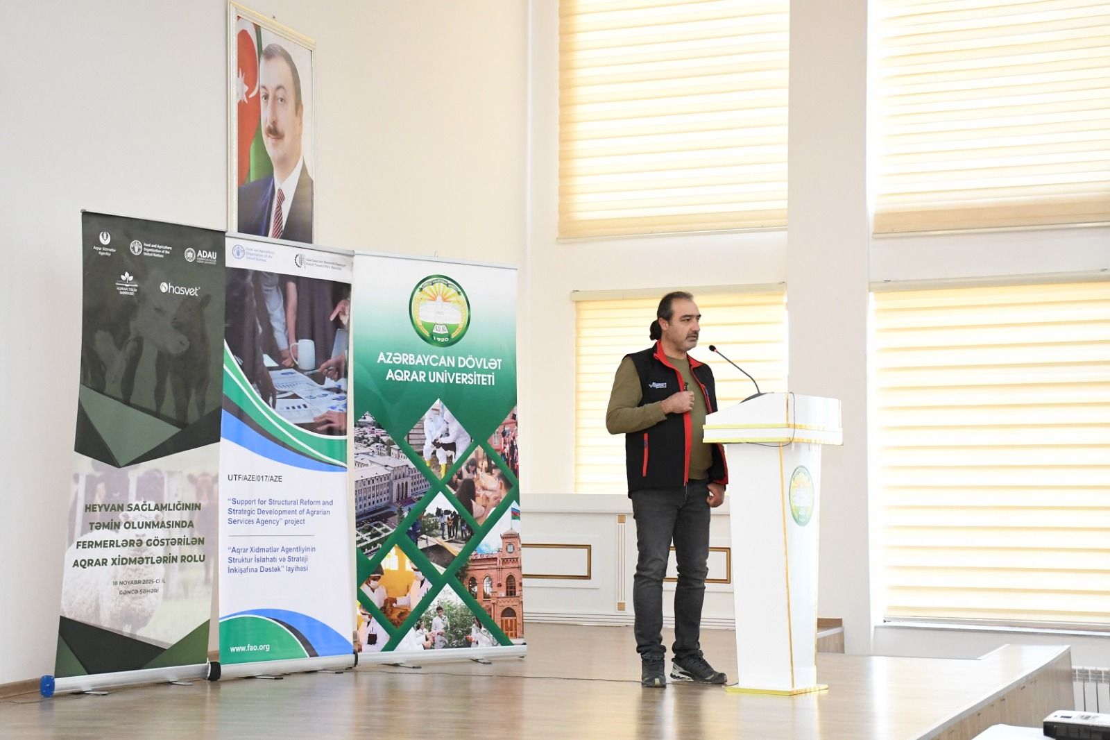 Azərbaycan Dövlət Aqrar Universiteti (ADAU), Aqrar Xidmətlər Agentliyinin (AXA) Aqrar Təlim Mərkəzi ilə "Hasvet Baku" MMC-nin birgə təşkilatçılığı, BMT-nin Ərzaq və Kənd Təsərrüfatı Təşkilatının (FAO) dəstəyi ilə “Heyvan sağlamlığının təmin olunmasında fermerlərə göstərilən aqrar xidmətlərin rolu” mövzusunda keçirilən təlimlərin ilk günü uğurla başa çatıb.